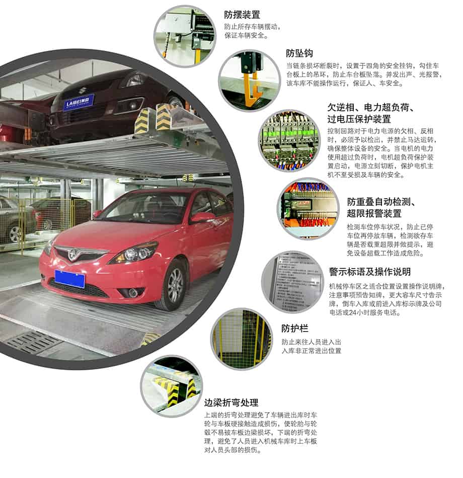PSH2重列二层升降横移机械立体停车库多重安全保护装置,中文液晶人机界面。整个设备结构简单、标准化设计、规模化生产,安装速度快,建造成本经济,保养维护简便,费用低。顶层载车板可上下升降,底层载车板只需左右横移。每个控制区的底层车位均应留一个空位,可以通过横移载车板变换空位,使空位正上方的顶层载车板下降到底层,整个过程即可完成。底层载车板上车不需要仍何动作,可直接出车。